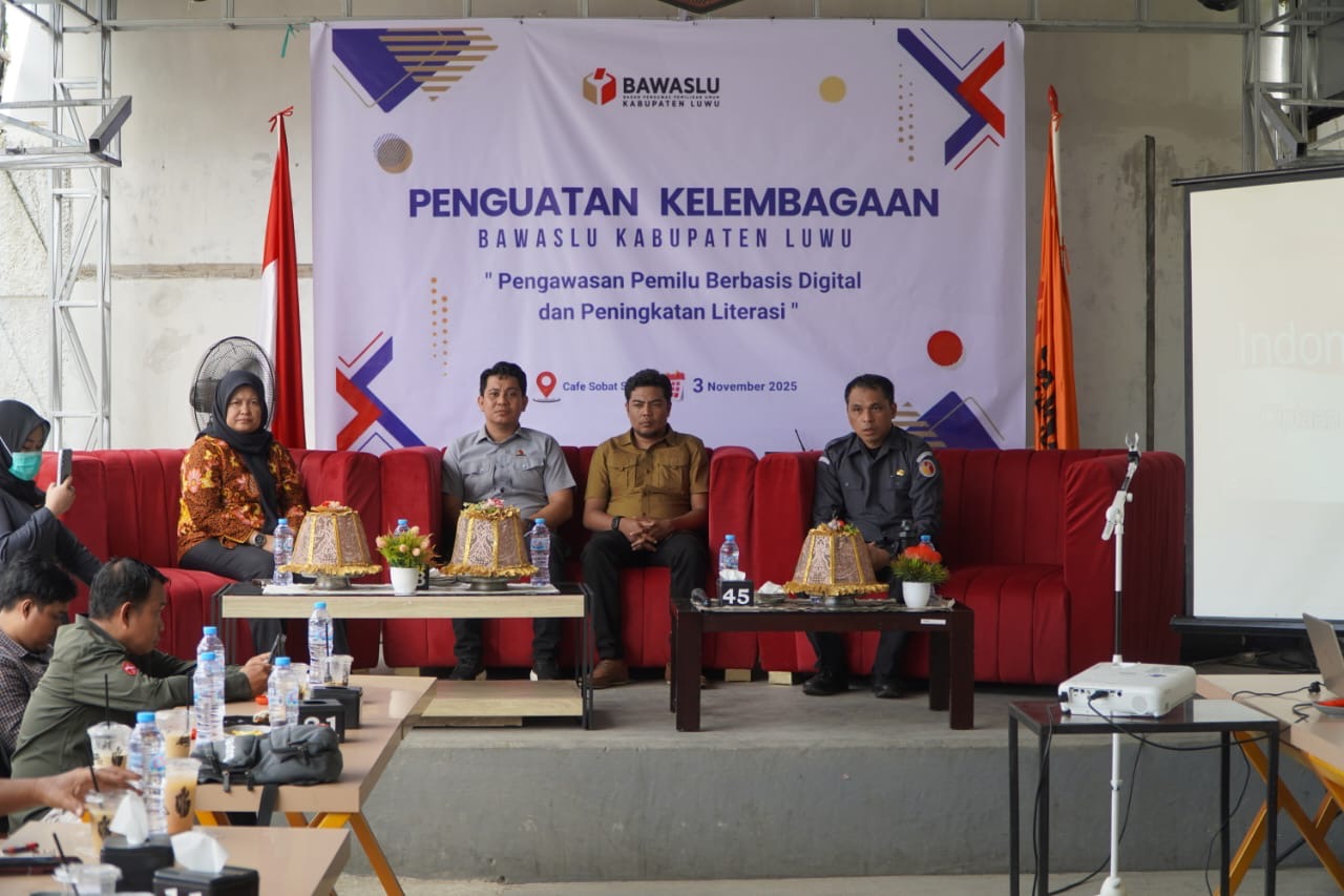 Foldernusantara | Luwu – Badan Pengawas Pemilu (Bawaslu) Kabupaten Luwu menggelar kegiatan Dialog Penguatan Kelembagaan di Café Sobat Sudut Belopa, Senin (3/11/2025).