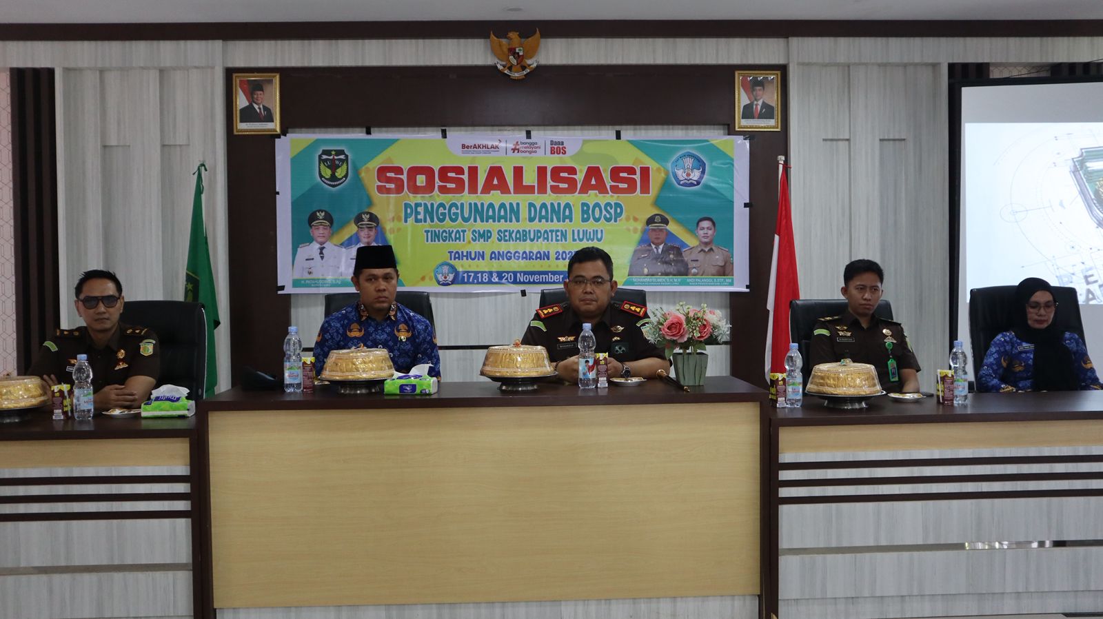 Sosialisasi ini menghadirkan empat narasumber, yaitu Kepala Dinas Pendidikan Luwu Andi Palanggi, Kepala Kejaksaan Negeri Luwu Muhandas Ulimen, Kasi Intelijen Kejari Luwu Andi Ardi Aman, serta Kepala Subseksi II Intelijen Muhammad Wildan Yusuf.