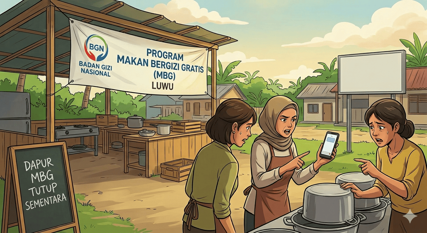 Foldernusantara | Luwu – Polemik penghentian sementara operasional sejumlah dapur program Makan Bergizi Gratis (MBG) di Kabupaten Luwu, Sulawesi Selatan, terus bergulir. Kali ini, sorotan datang dari lemahnya komunikasi dan koordinasi Koordinator Wilayah (Korwil) Satuan Pelayanan Pemenuhan Gizi (SPPG) dengan para mitra di lapangan.
