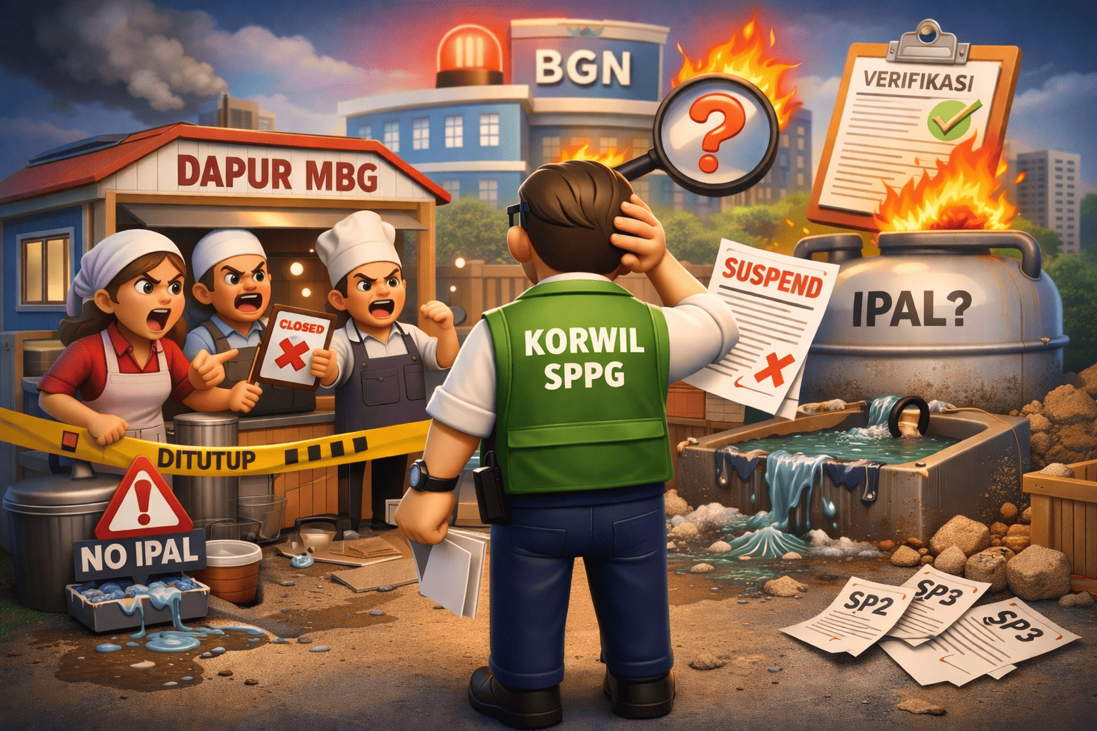 Selain itu, Korwil juga dinilai tidak profesional dalam melakukan penilaian kelayakan dapur MBG. Pasalnya, beberapa dapur yang tidak memiliki Instalasi Pengolahan Air Limbah (IPAL) justru dinyatakan lolos verifikasi dan diizinkan beroperasi.