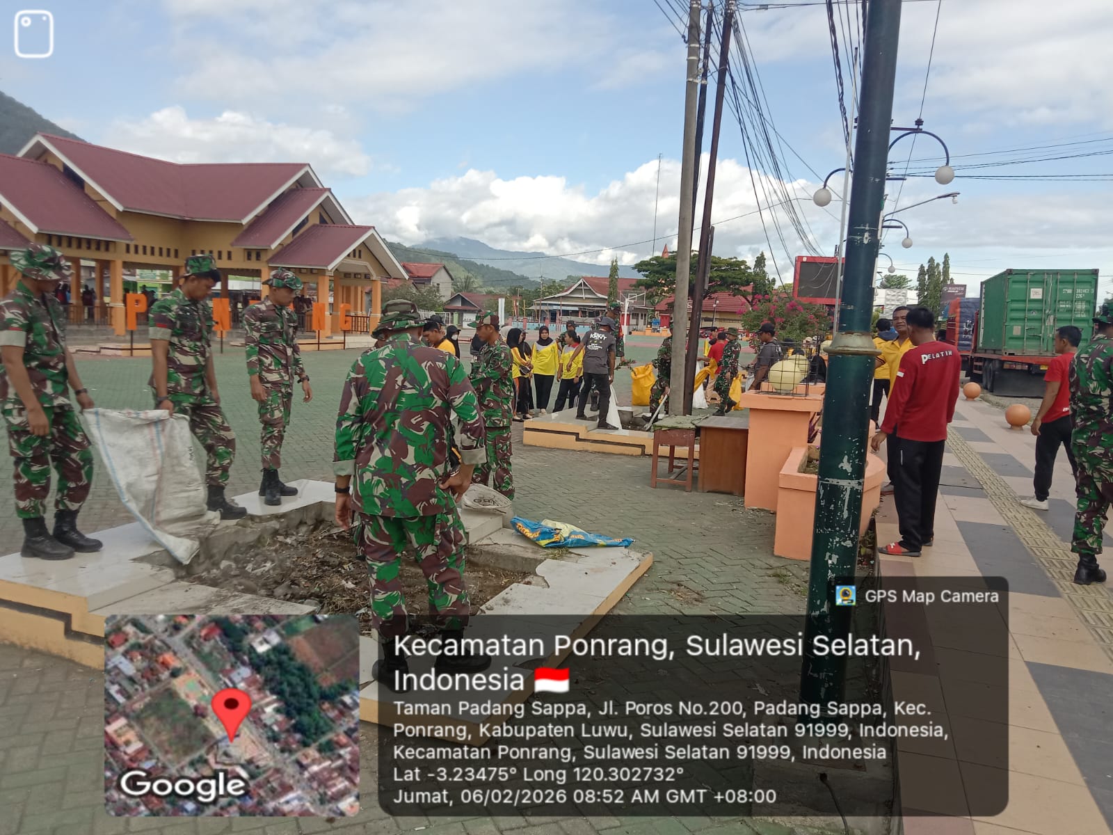 Sejak pagi, puluhan personel TNI dan mahasiswa tampak membersihkan area lapangan yang akan menjadi lokasi utama MTQ. Mereka memotong rumput liar, mengangkut sampah, serta merapikan fasilitas umum di sekitar area kegiatan.