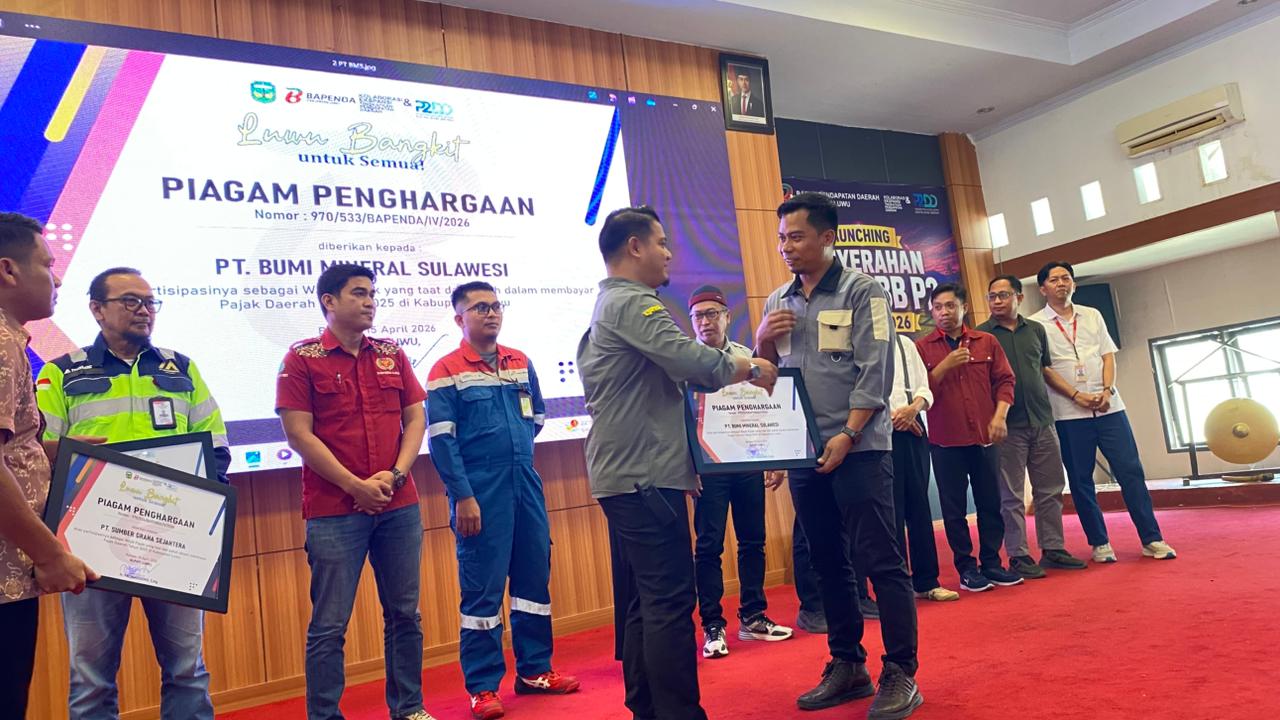 Foldernusantara | Luwu – PT Bumi Mineral Sulawesi (BMS) menerima penghargaan dari Pemerintah Kabupaten Luwu atas ketaatan dan kepatuhan dalam memenuhi kewajiban perpajakan daerah.